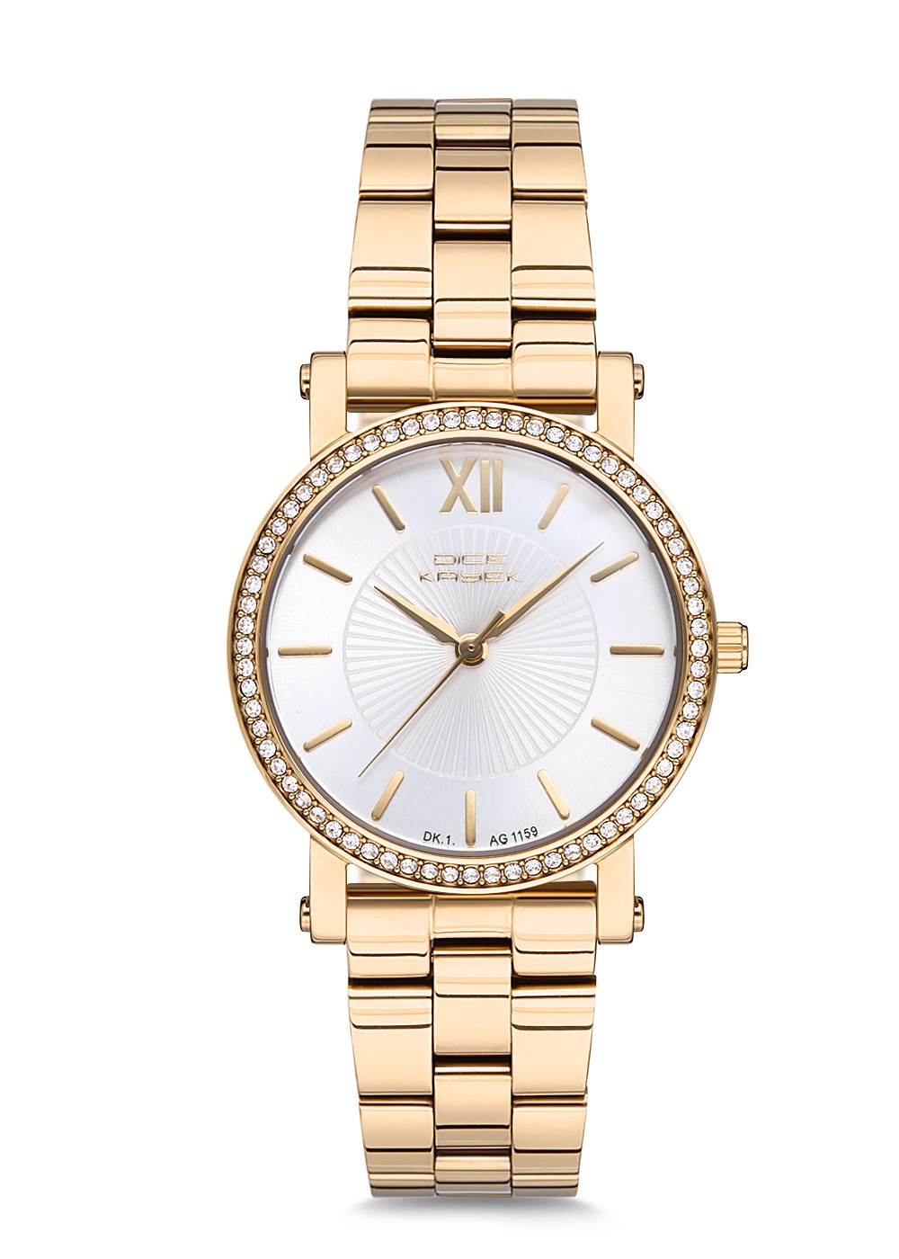 Kadın - Taşli - Sari - Gümüş - Paslanmaz Masi̇f Çeli̇k - 3 Atm - Sertleşti̇ri̇lmi̇ş Mi̇neral Cam - Dice Kayek - 32
