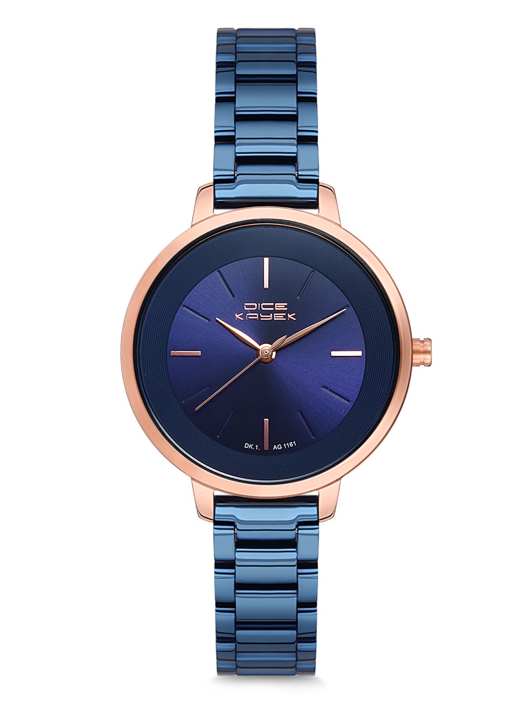 Kadın - Düz - Rose Mavi̇ - Mavi̇ - Paslanmaz Masi̇f Çeli̇k - 3 Atm - Sertleşti̇ri̇lmi̇ş Mi̇neral Cam - Dice Kayek