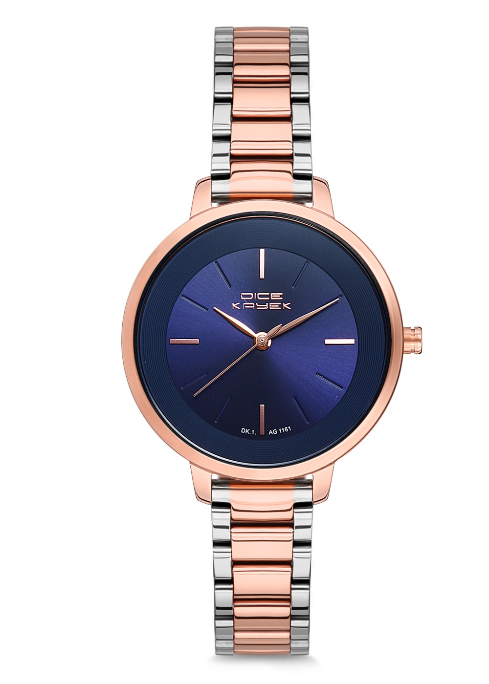 Kadın - Düz - Rose Beyaz - Mavi̇ - Paslanmaz Masi̇f Çeli̇k - 3 Atm - Sertleşti̇ri̇lmi̇ş Mi̇neral Cam - Dice Kayek
