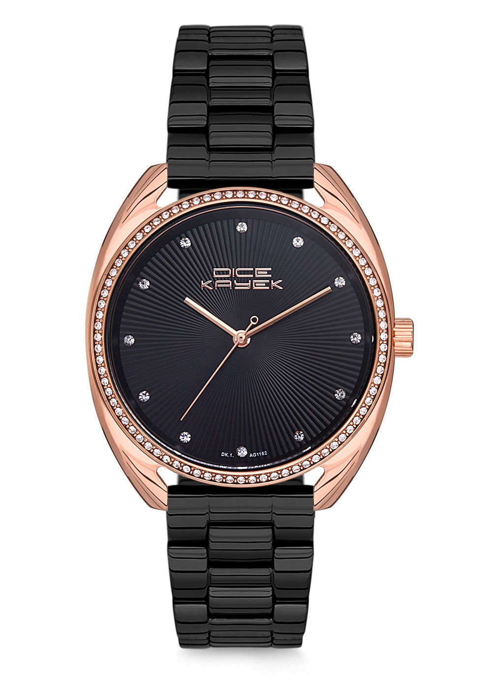Kadın - Taşli - Rose Si̇yah - Si̇yah - Paslanmaz Masi̇f Çeli̇k - 3 Atm - Sertleşti̇ri̇lmi̇ş Mi̇neral Cam - Dice Kayek