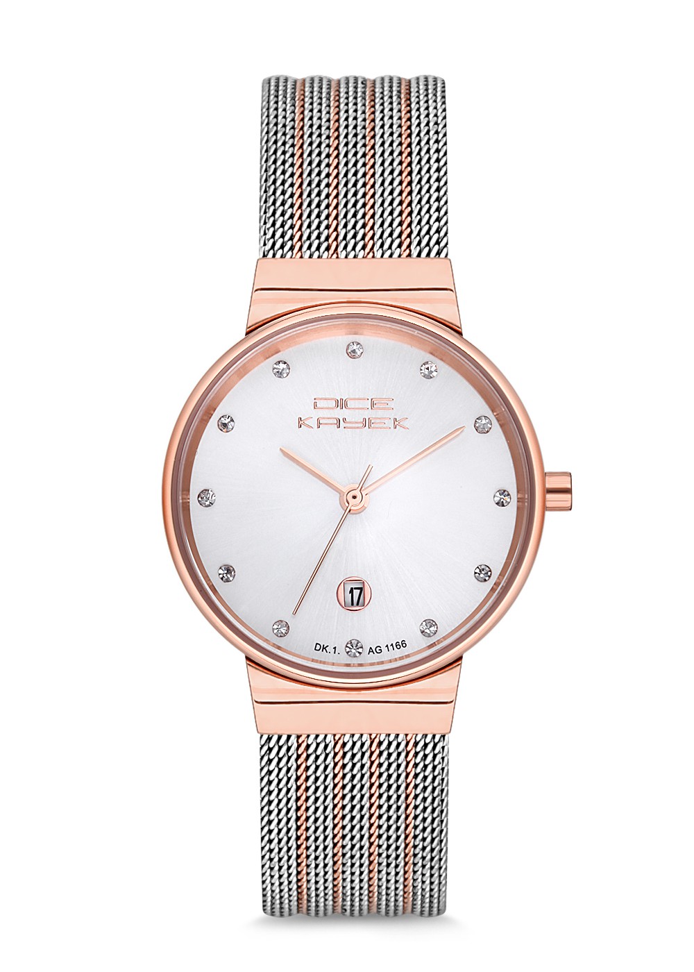 Kadın - Takvi̇mli̇ - Rose Beyaz - Gümüş - Çeli̇k Örme Kordon - 3 Atm - Sertleşti̇ri̇lmi̇ş Mi̇neral Cam - Dice Kayek