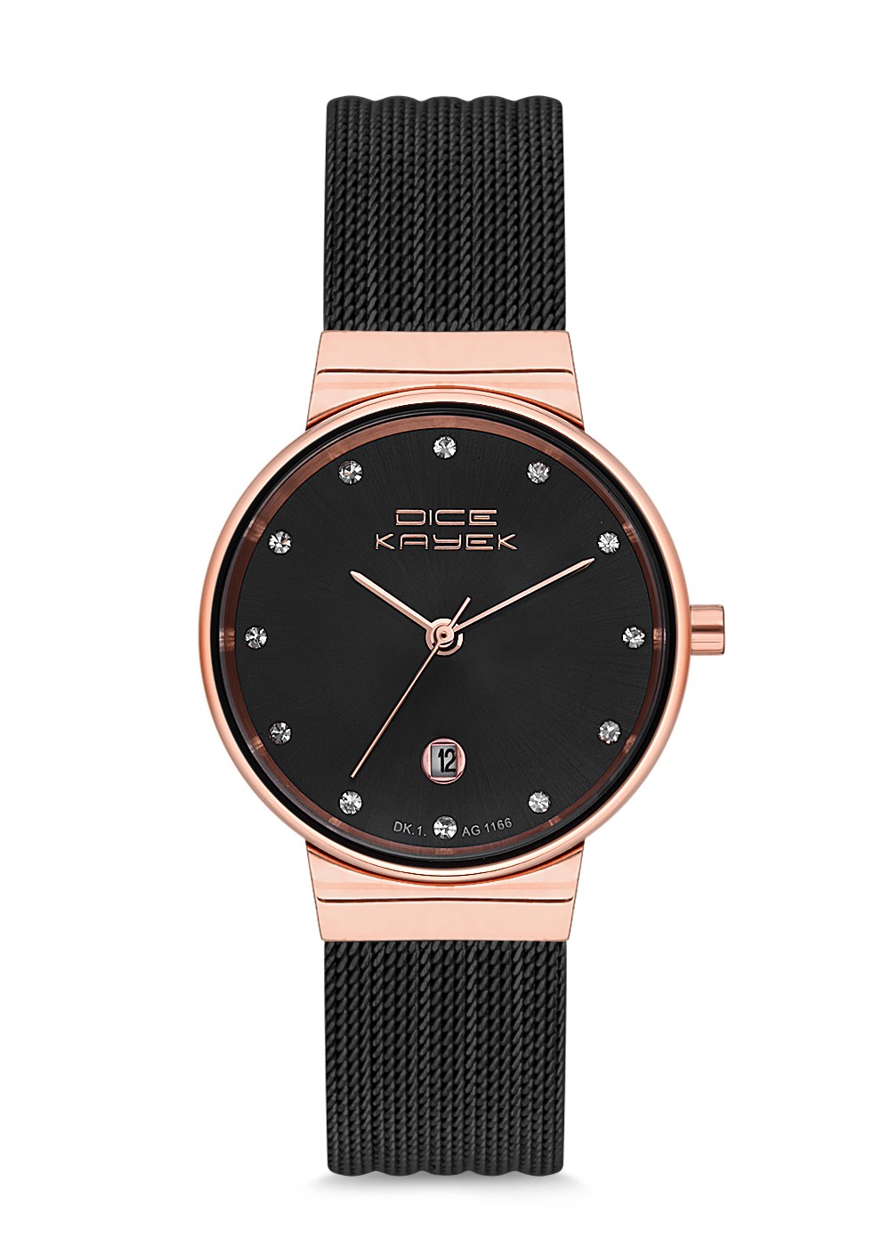 Kadın - Takvi̇mli̇ - Rose Si̇yah - Si̇yah - Çeli̇k Örme Kordon - 3 Atm - Sertleşti̇ri̇lmi̇ş Mi̇neral Cam - Dice Kayek