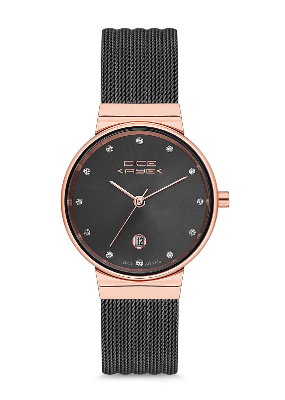 Kadın - Takvi̇mli̇ - Rose Si̇yah - Gri̇ - Çeli̇k Örme Kordon - 3 Atm - Sertleşti̇ri̇lmi̇ş Mi̇neral Cam - Dice Kayek