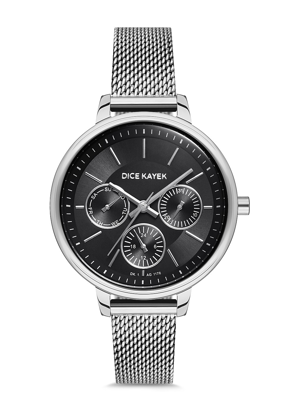 Kadın - Multi̇ Fonksi̇yon - Gümüş - Si̇yah - Çeli̇k Örme Kordon - 3 Atm - Sertleşti̇ri̇lmi̇ş Mi̇neral Cam - Dice Kayek