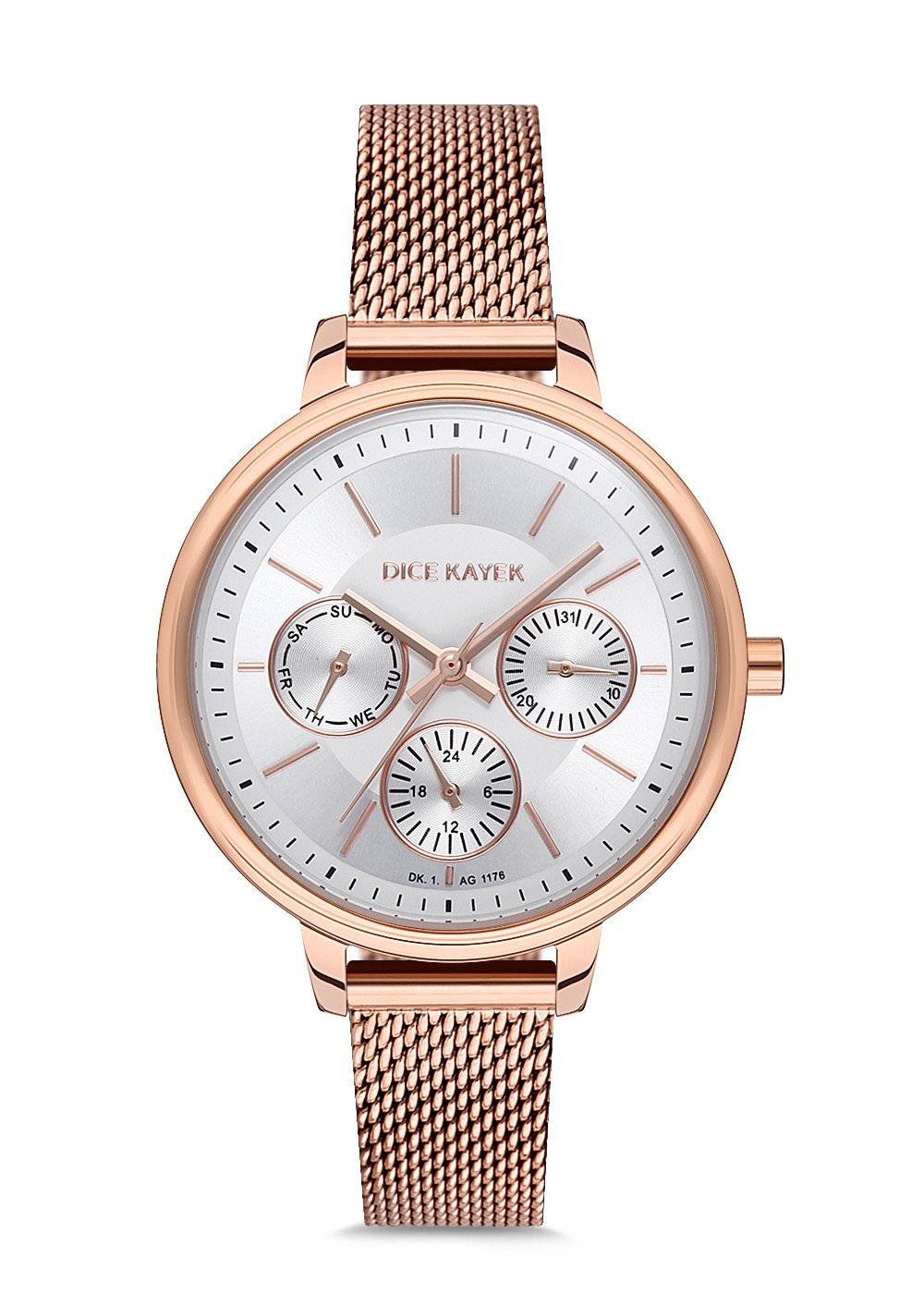 Kadın - Multi̇ Fonksi̇yon - Rose - Gümüş - Çeli̇k Örme Kordon - 3 Atm - Sertleşti̇ri̇lmi̇ş Mi̇neral Cam - Dice Kayek