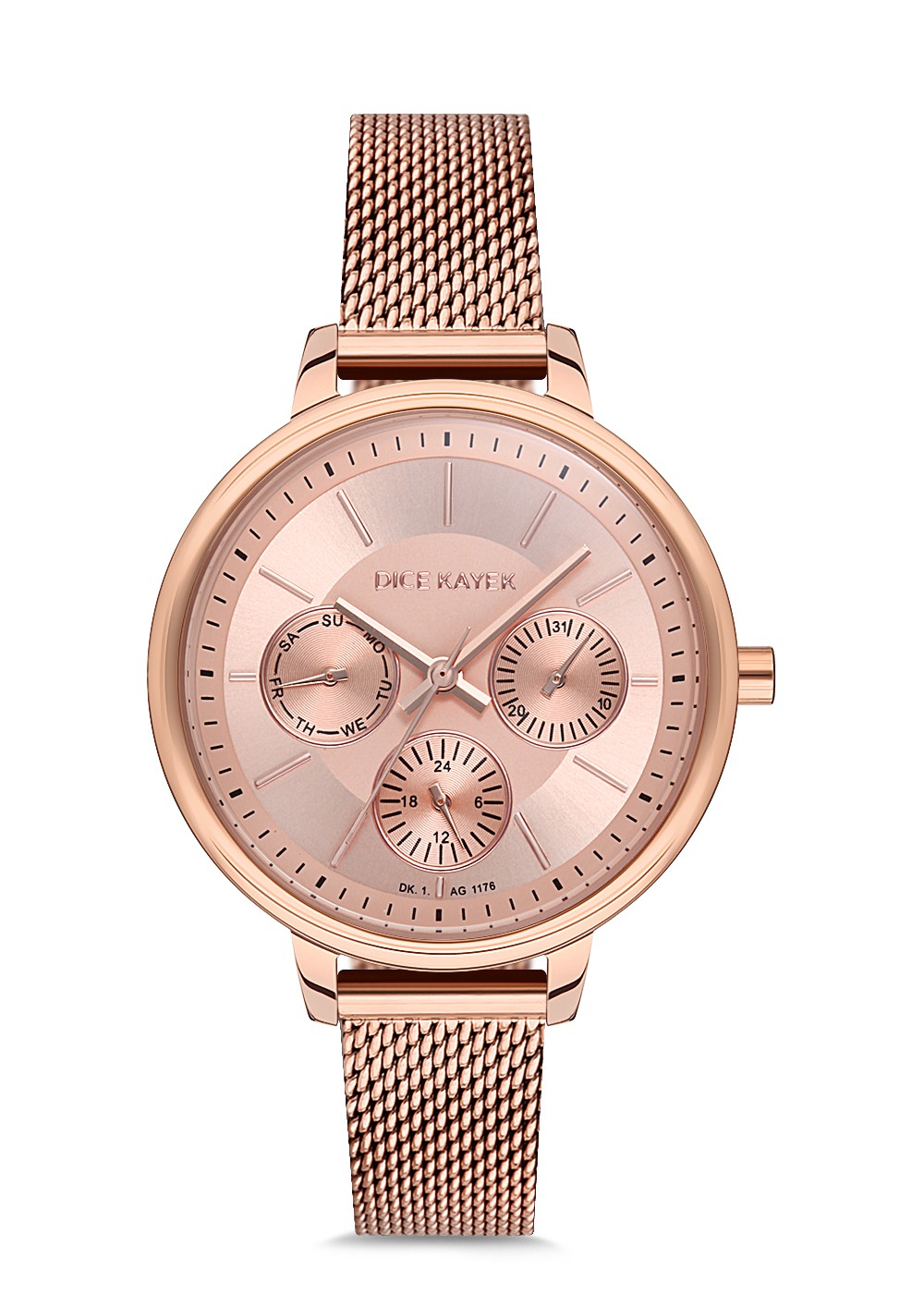 Kadın - Multi̇ Fonksi̇yon - Rose - Rose - Çeli̇k Örme Kordon - 3 Atm - Sertleşti̇ri̇lmi̇ş Mi̇neral Cam - Dice Kayek