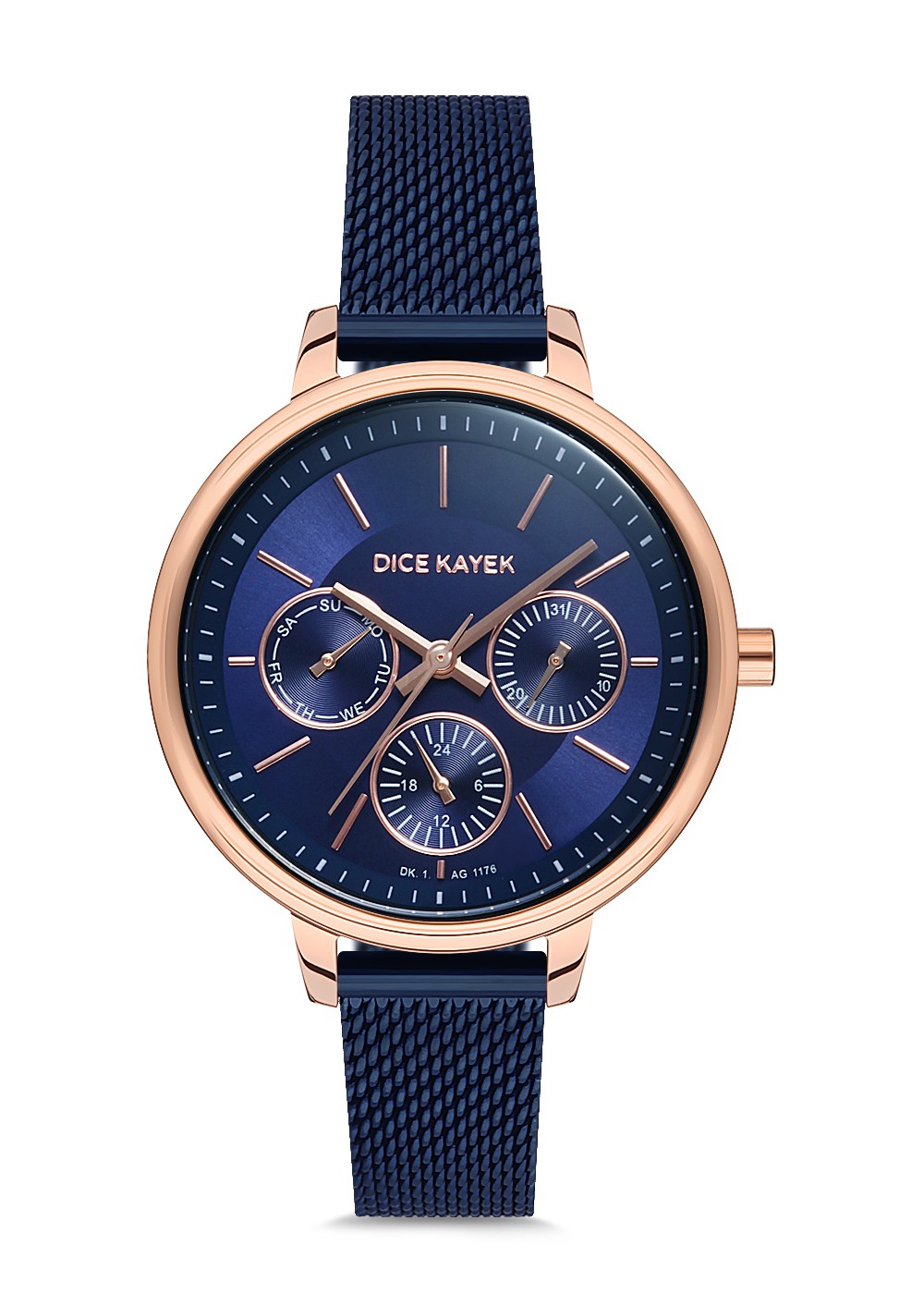 Kadın - Multi̇ Fonksi̇yon - Rose Mavi̇ - Mavi̇ - Çeli̇k Örme Kordon - 3 Atm - Sertleşti̇ri̇lmi̇ş Mi̇neral Cam - Dice Kayek