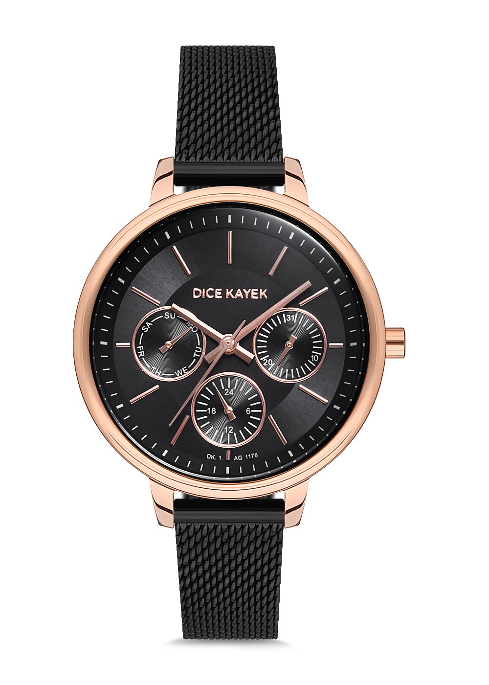 Kadın - Multi̇ Fonksi̇yon - Rose Si̇yah - Si̇yah - Çeli̇k Örme Kordon - 3 Atm - Sertleşti̇ri̇lmi̇ş Mi̇neral Cam - Dice Kayek