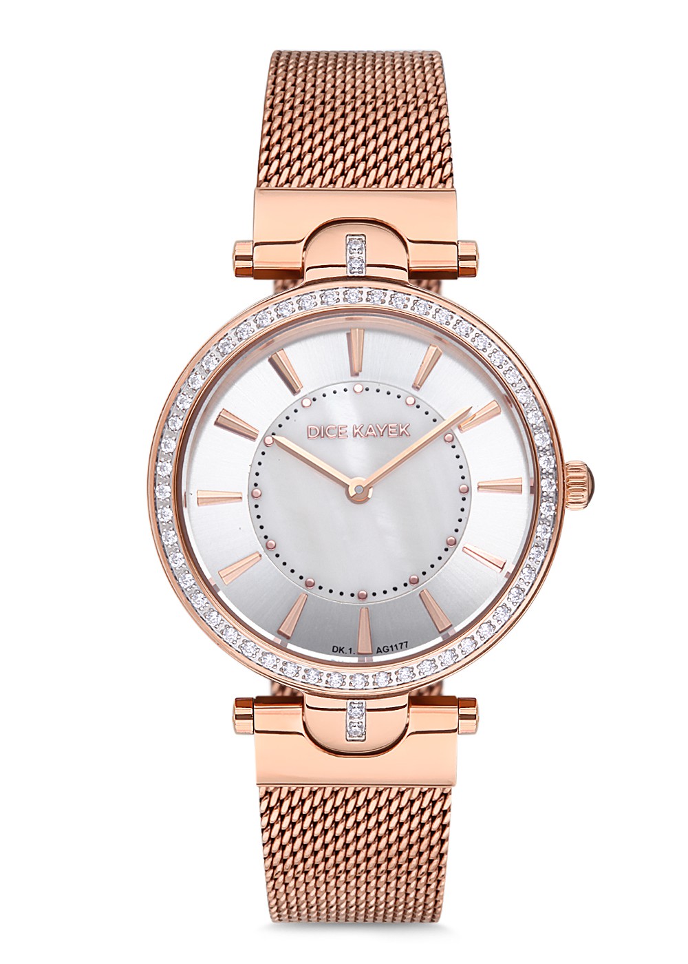 Kadın - Taşli - Rose - Gümüş - Çeli̇k Örme Kordon - 3 Atm - Sertleşti̇ri̇lmi̇ş Mi̇neral Cam - Dice Kayek