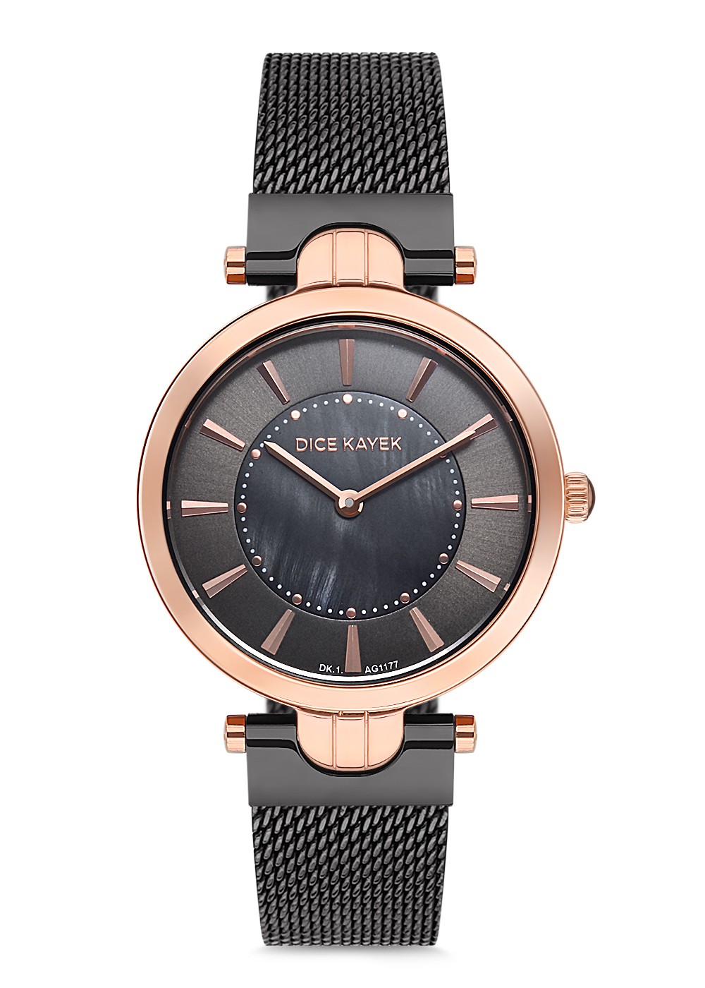 Kadın - Düz - Rose Si̇yah - Gri̇ - Çeli̇k Örme Kordon - 3 Atm - Sertleşti̇ri̇lmi̇ş Mi̇neral Cam - Dice Kayek