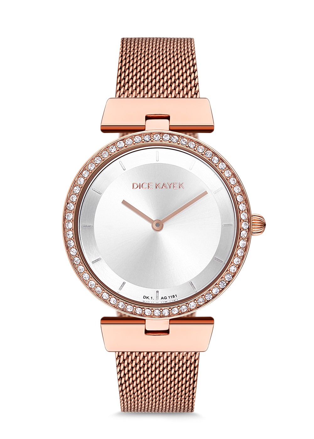 Kadın - Taşli - Rose - Gümüş - Çeli̇k Örme Kordon - 3 Atm - Sertleşti̇ri̇lmi̇ş Mi̇neral Cam - Dice Kayek