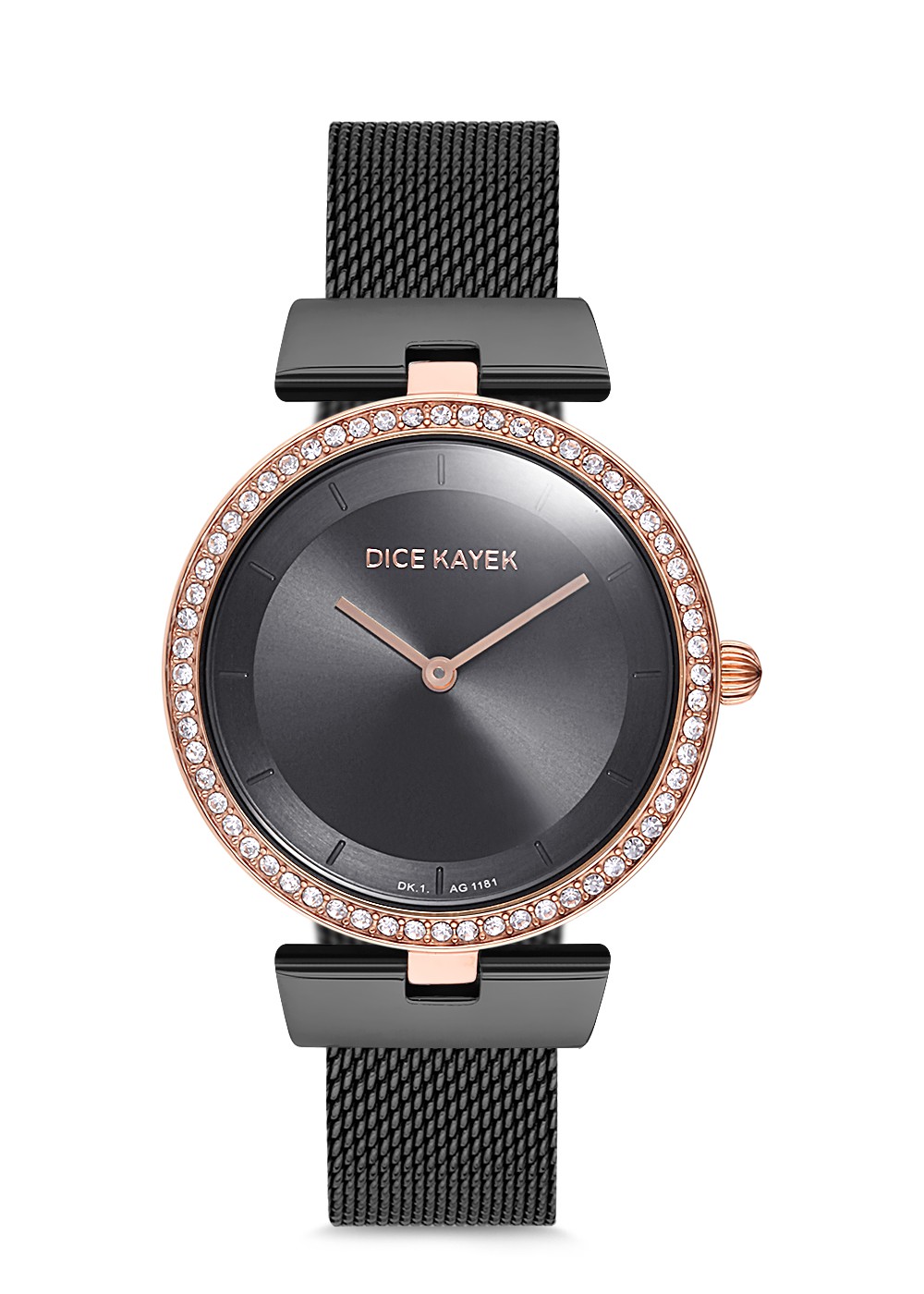 Kadın - Taşli - Rose Si̇yah - Gri̇ - Çeli̇k Örme Kordon - 3 Atm - Sertleşti̇ri̇lmi̇ş Mi̇neral Cam - Dice Kayek