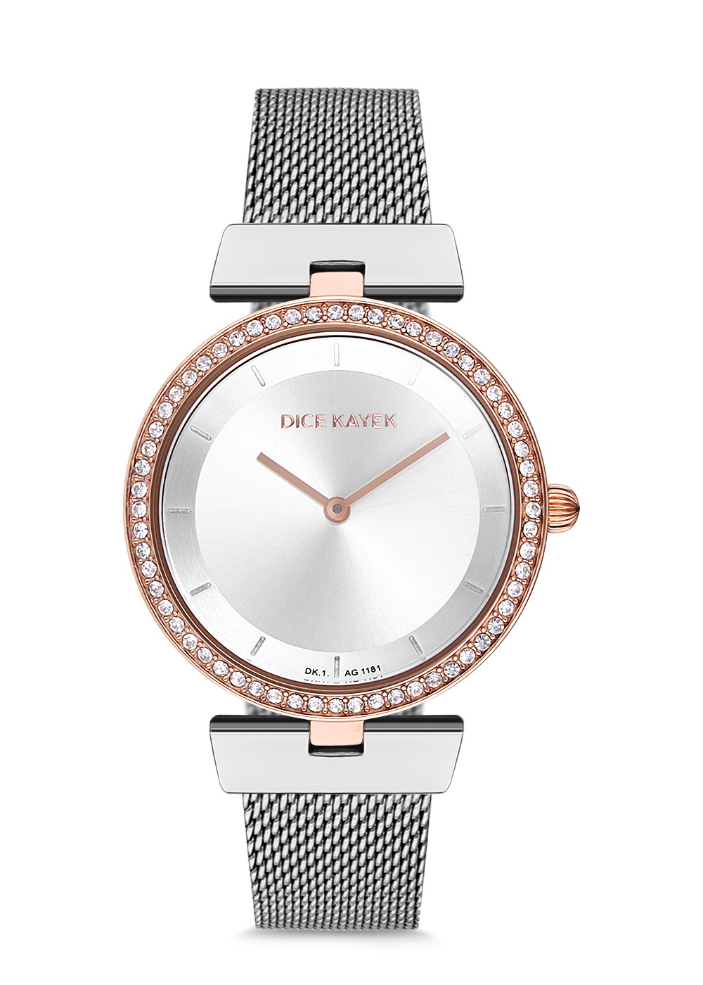 Kadın - Taşli - Rose Beyaz - Gümüş - Çeli̇k Örme Kordon - 3 Atm - Sertleşti̇ri̇lmi̇ş Mi̇neral Cam - Dice Kayek