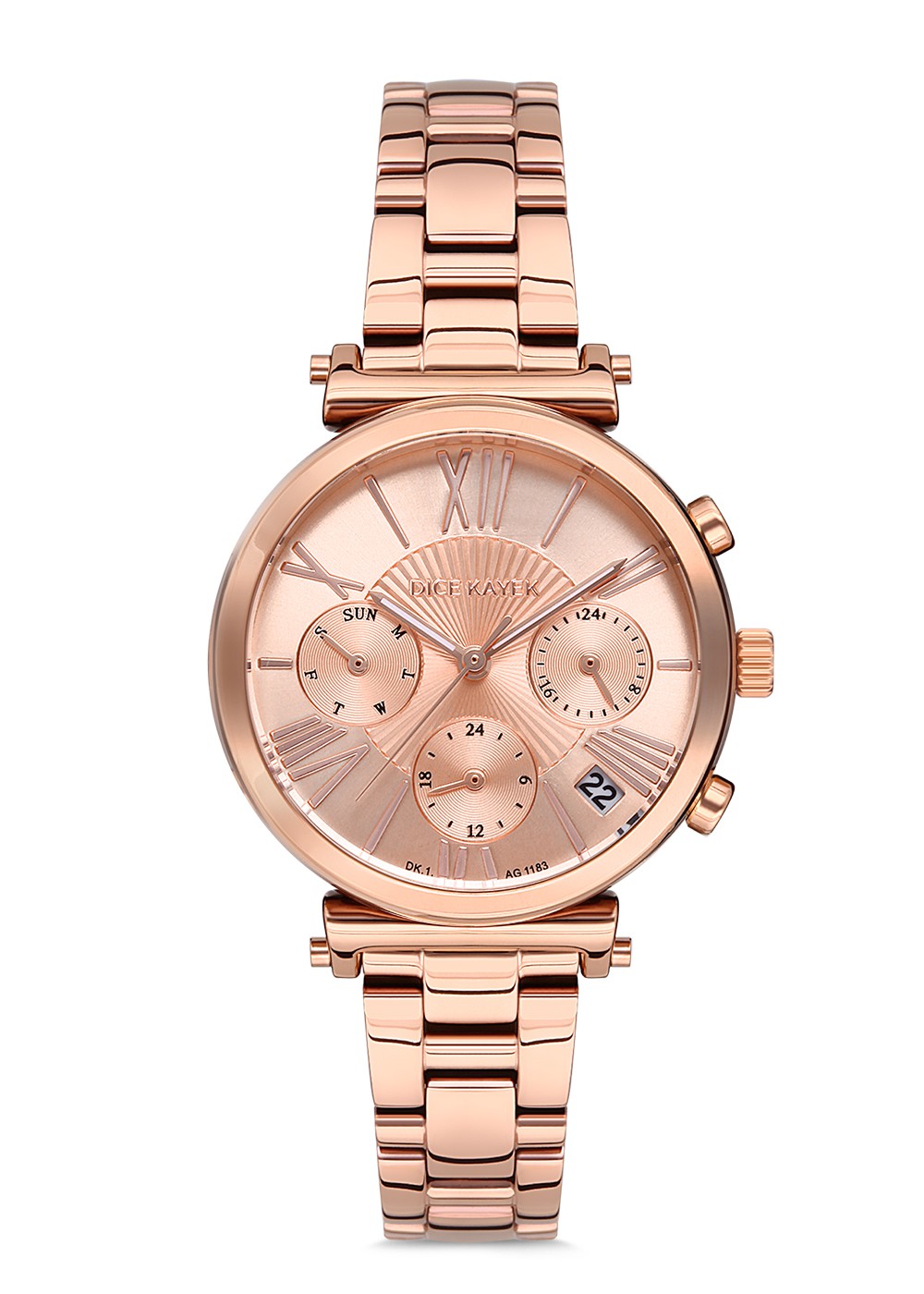 Kadın - Multi̇ Fonksi̇yon - Rose - Rose - Paslanmaz Masi̇f Çeli̇k - 3 Atm - Sertleşti̇ri̇lmi̇ş Mi̇neral Cam - Dice Kayek - 34