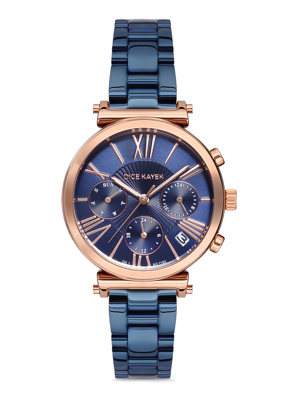 Kadın - Multi̇ Fonksi̇yon - Rose Mavi̇ - Mavi̇ - Paslanmaz Masi̇f Çeli̇k - 3 Atm - Sertleşti̇ri̇lmi̇ş Mi̇neral Cam - Dice Kayek - 34