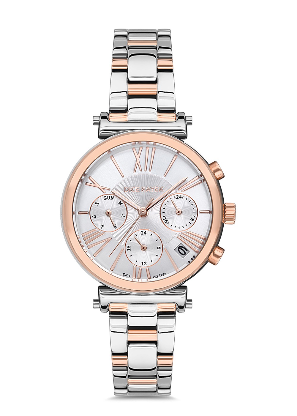 Kadın - Multi̇ Fonksi̇yon - Rose Beyaz - Gümüş - Paslanmaz Masi̇f Çeli̇k - 3 Atm - Sertleşti̇ri̇lmi̇ş Mi̇neral Cam - Dice Kayek - 34