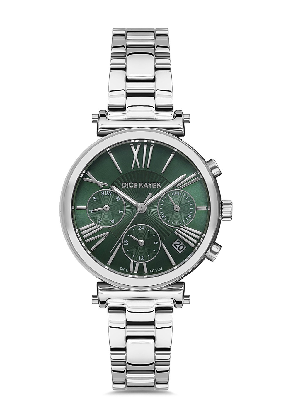 Kadın - Multi̇ Fonksi̇yon - Gümüş - Yeşi̇l - Paslanmaz Masi̇f Çeli̇k - 3 Atm - Sertleşti̇ri̇lmi̇ş Mi̇neral Cam - Dice Kayek - 34