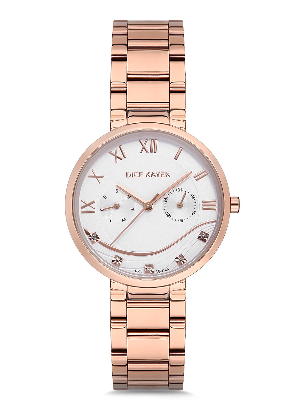 Kadın - Multi̇ Fonksi̇yon - Rose - Gümüş - Paslanmaz Masi̇f Çeli̇k - 3 Atm - Sertleşti̇ri̇lmi̇ş Mi̇neral Cam - Dice Kayek