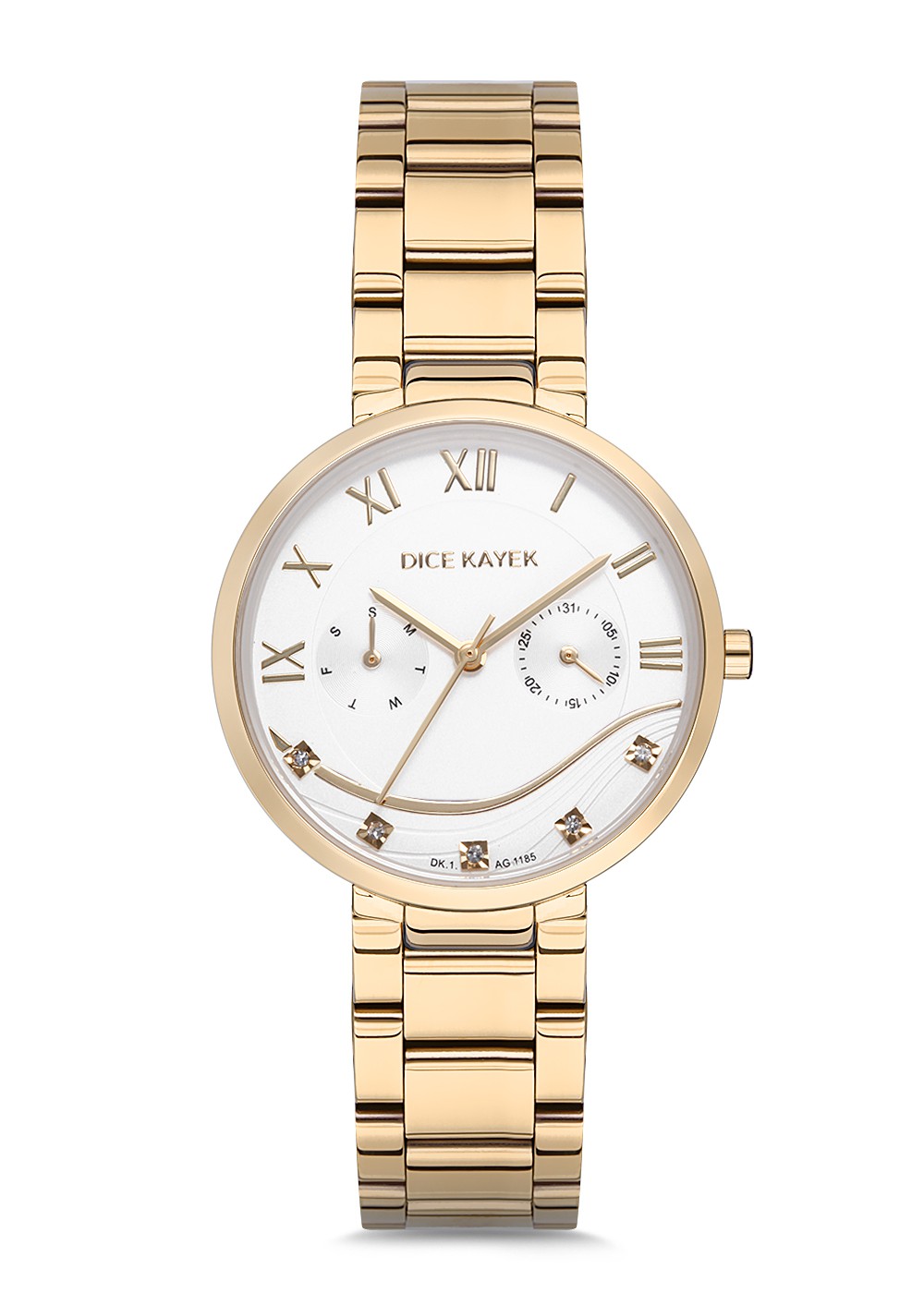 Kadın - Multi̇ Fonksi̇yon - Sari - Gümüş - Paslanmaz Masi̇f Çeli̇k - 3 Atm - Sertleşti̇ri̇lmi̇ş Mi̇neral Cam - Dice Kayek