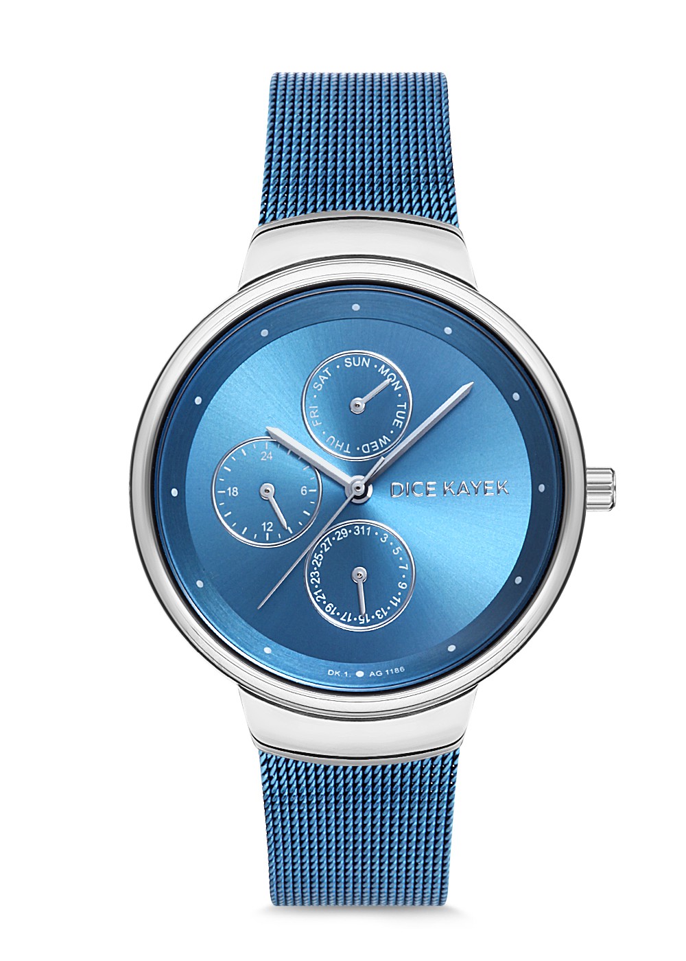 Kadın - Multi̇ Fonksi̇yon - Gümüş Mavi̇ - Mavi̇ - Çeli̇k Örme Kordon - 3 Atm - Sertleşti̇ri̇lmi̇ş Mi̇neral Cam - Dice Kayek