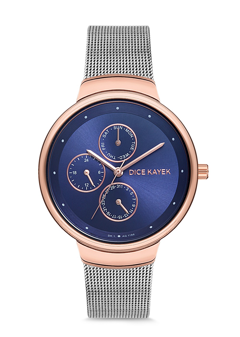 Kadın - Multi̇ Fonksi̇yon - Rose Beyaz - Mavi̇ - Çeli̇k Örme Kordon - 3 Atm - Sertleşti̇ri̇lmi̇ş Mi̇neral Cam - Dice Kayek