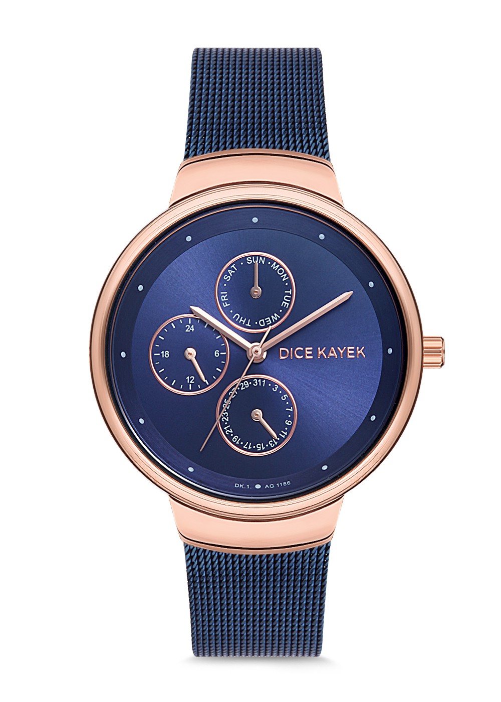 Kadın - Multi̇ Fonksi̇yon - Rose Mavi̇ - Mavi̇ - Çeli̇k Örme Kordon - 3 Atm - Sertleşti̇ri̇lmi̇ş Mi̇neral Cam - Dice Kayek