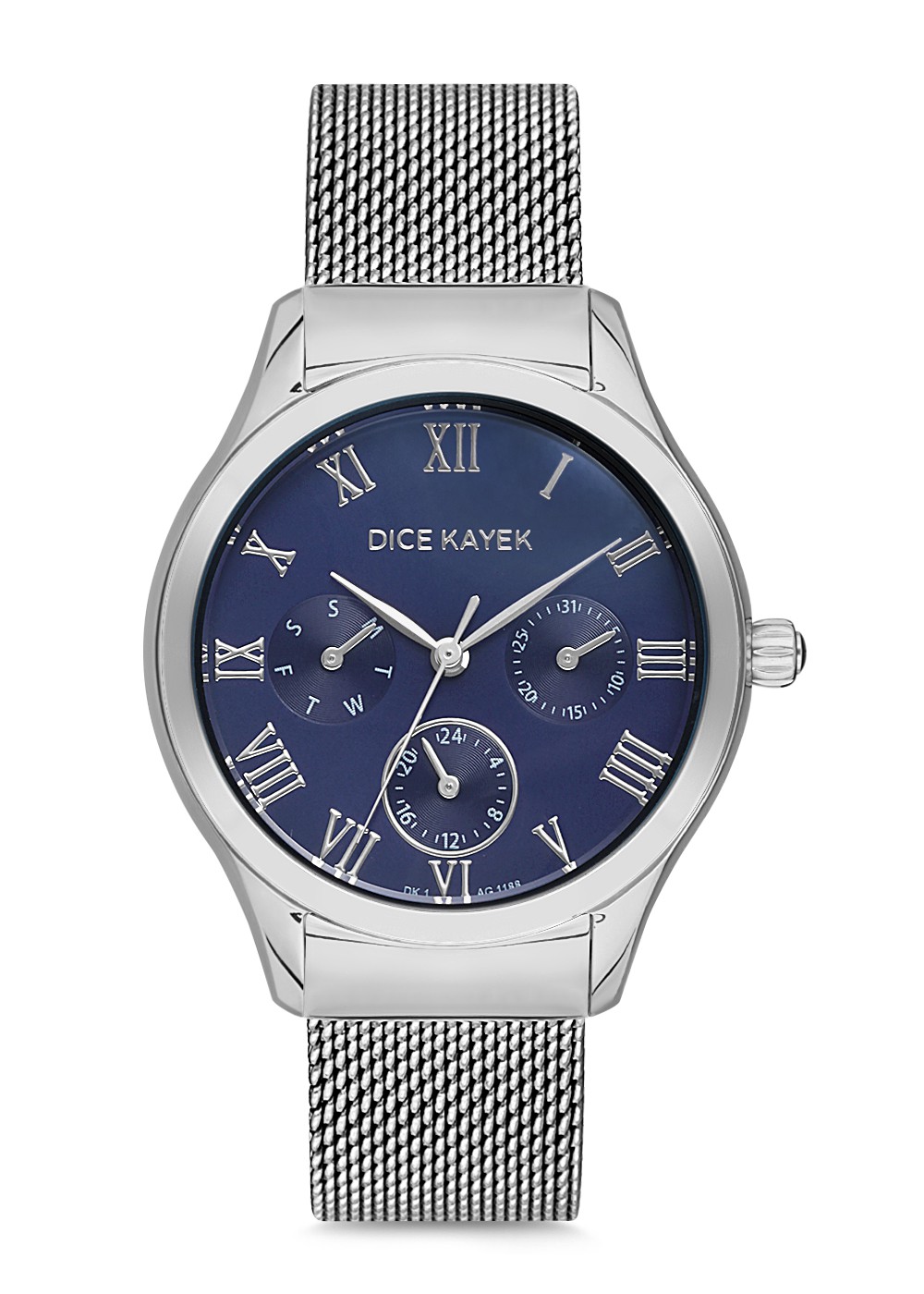 Kadın - Multi̇ Fonksi̇yon - Gümüş - Mavi̇ - Çeli̇k Örme Kordon - 3 Atm - Sertleşti̇ri̇lmi̇ş Mi̇neral Cam - Dice Kayek