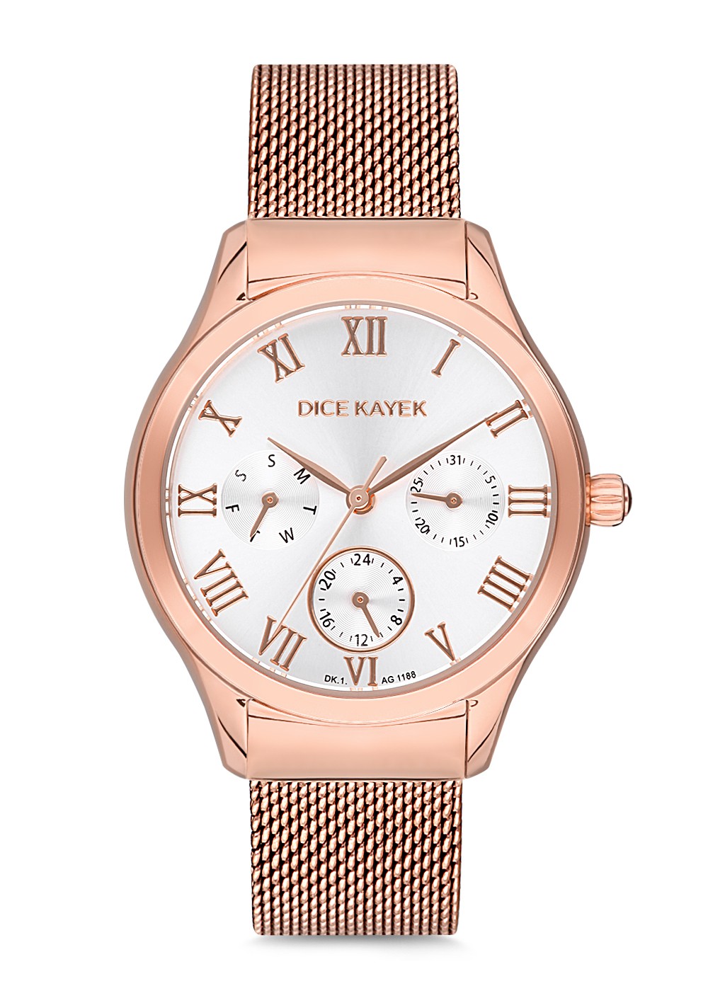 Kadın - Multi̇ Fonksi̇yon - Rose - Gümüş - Çeli̇k Örme Kordon - 3 Atm - Sertleşti̇ri̇lmi̇ş Mi̇neral Cam - Dice Kayek