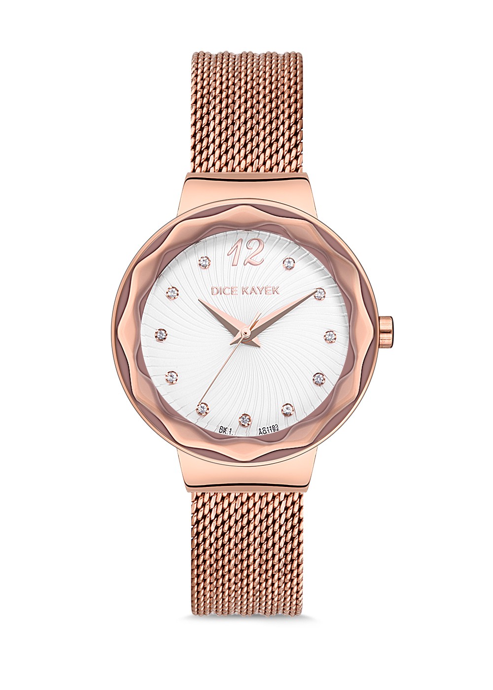 Kadın - Düz - Rose - Gümüş - Çeli̇k Örme Kordon - 3 Atm - Sertleşti̇ri̇lmi̇ş Mi̇neral Cam - Dice Kayek