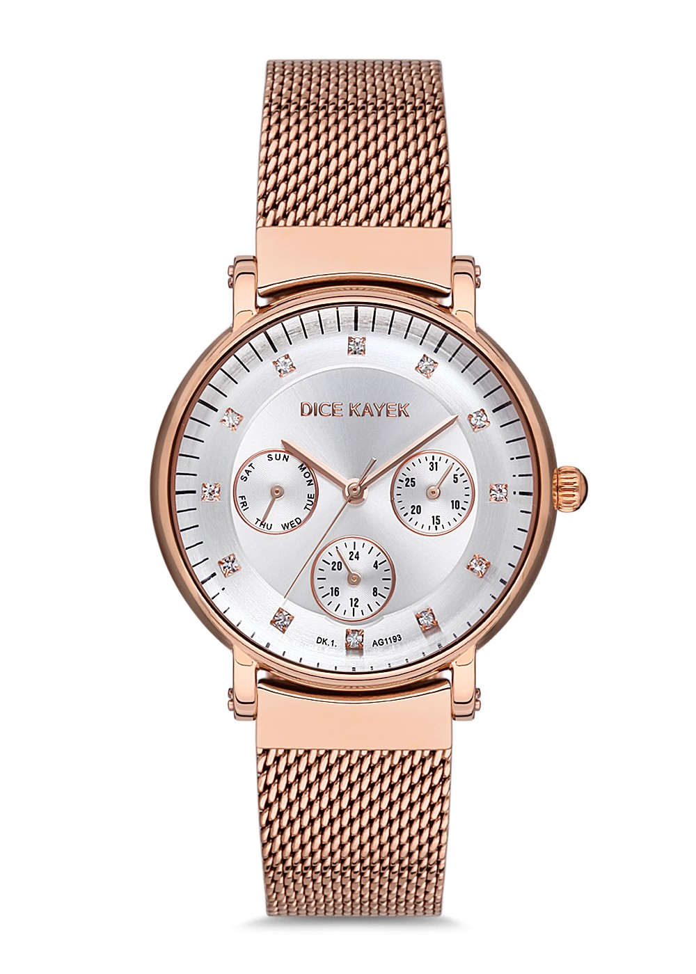Kadın - Multi̇ Fonksi̇yon - Rose - Gümüş - Çeli̇k Örme Kordon - 3 Atm - Sertleşti̇ri̇lmi̇ş Mi̇neral Cam - Dice Kayek - 34