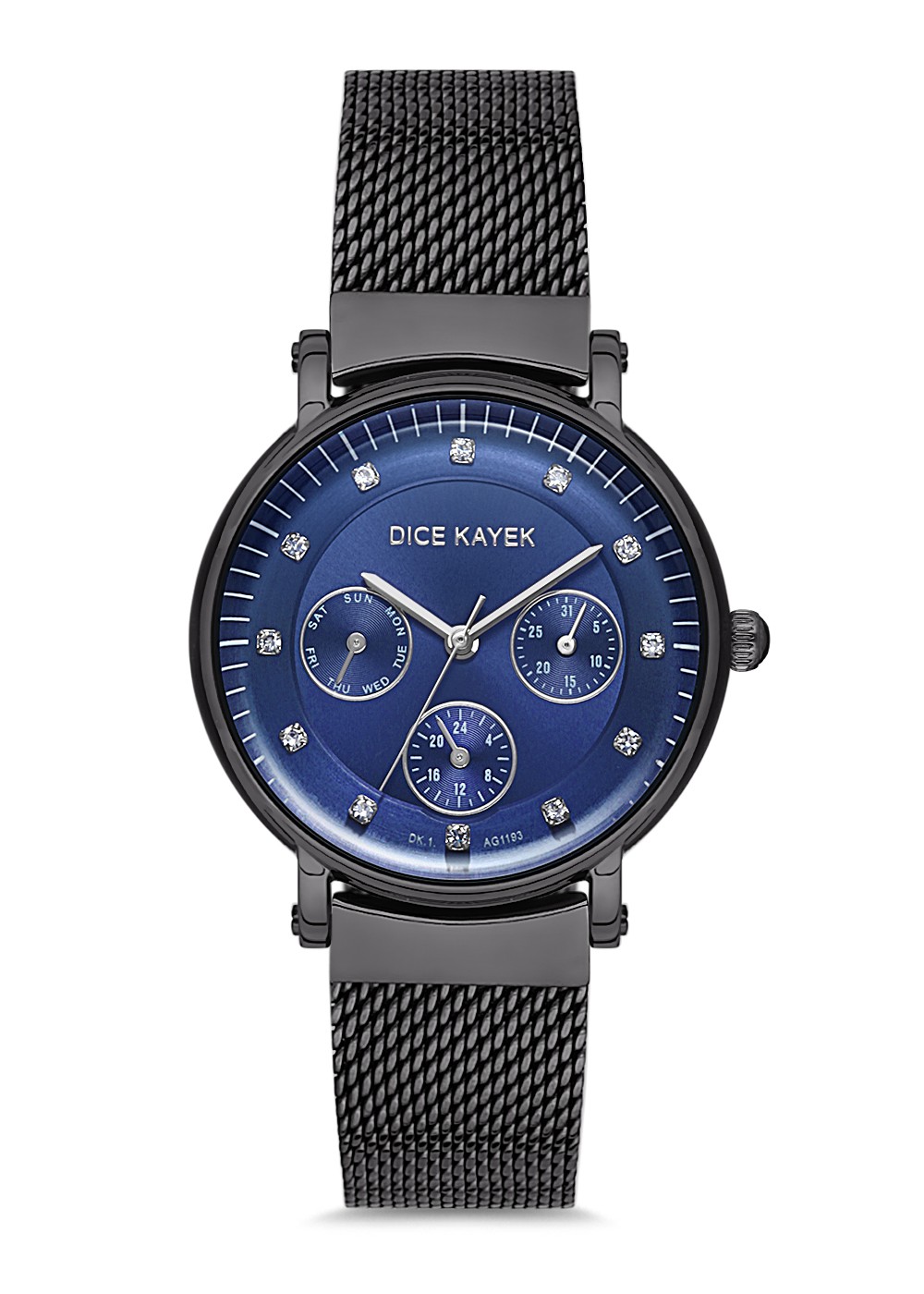 Kadın - Multi̇ Fonksi̇yon - Gun - Mavi̇ - Çeli̇k Örme Kordon - 3 Atm - Sertleşti̇ri̇lmi̇ş Mi̇neral Cam - Dice Kayek - 34
