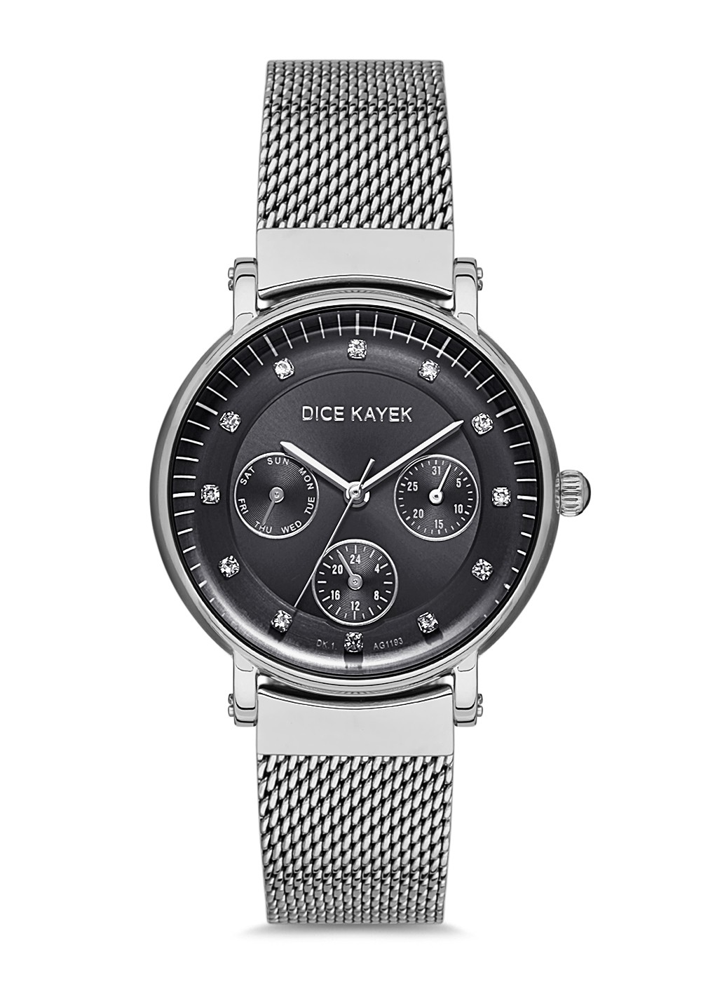 Kadın - Multi̇ Fonksi̇yon - Gümüş - Si̇yah - Çeli̇k Örme Kordon - 3 Atm - Sertleşti̇ri̇lmi̇ş Mi̇neral Cam - Dice Kayek - 34