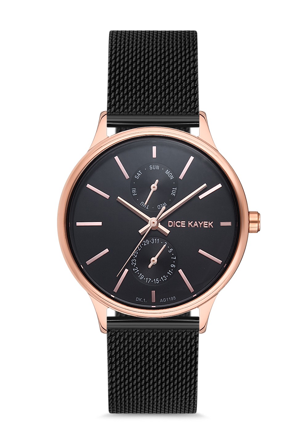 Kadın - Multi̇ Fonksi̇yon - Rose Si̇yah - Si̇yah - Çeli̇k Örme Kordon - 3 Atm - Sertleşti̇ri̇lmi̇ş Mi̇neral Cam - Dice Kayek