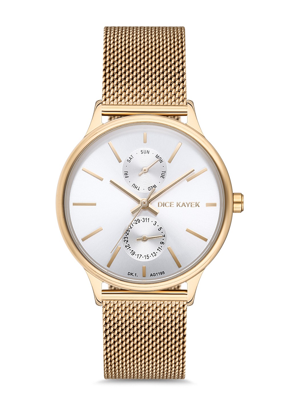 Kadın - Multi̇ Fonksi̇yon - Sari - Gümüş - Çeli̇k Örme Kordon - 3 Atm - Sertleşti̇ri̇lmi̇ş Mi̇neral Cam - Dice Kayek