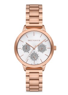 Kadın - Alttan Sani̇ye - Rose Beyaz - Gümüş - Paslanmaz Masi̇f Çeli̇k - 3 Atm - Sertleşti̇ri̇lmi̇ş Mi̇neral Cam - Dice Kayek