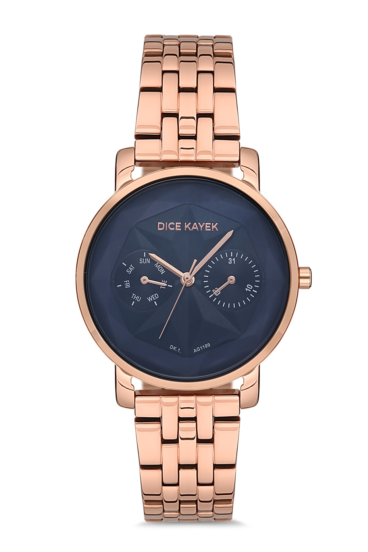 Kadın - Multi̇ Fonksi̇yon - Rose Mavi̇ - Mavi̇ - Paslanmaz Masi̇f Çeli̇k - 3 Atm - Sertleşti̇ri̇lmi̇ş Mi̇neral Cam - Dice Kayek - 34