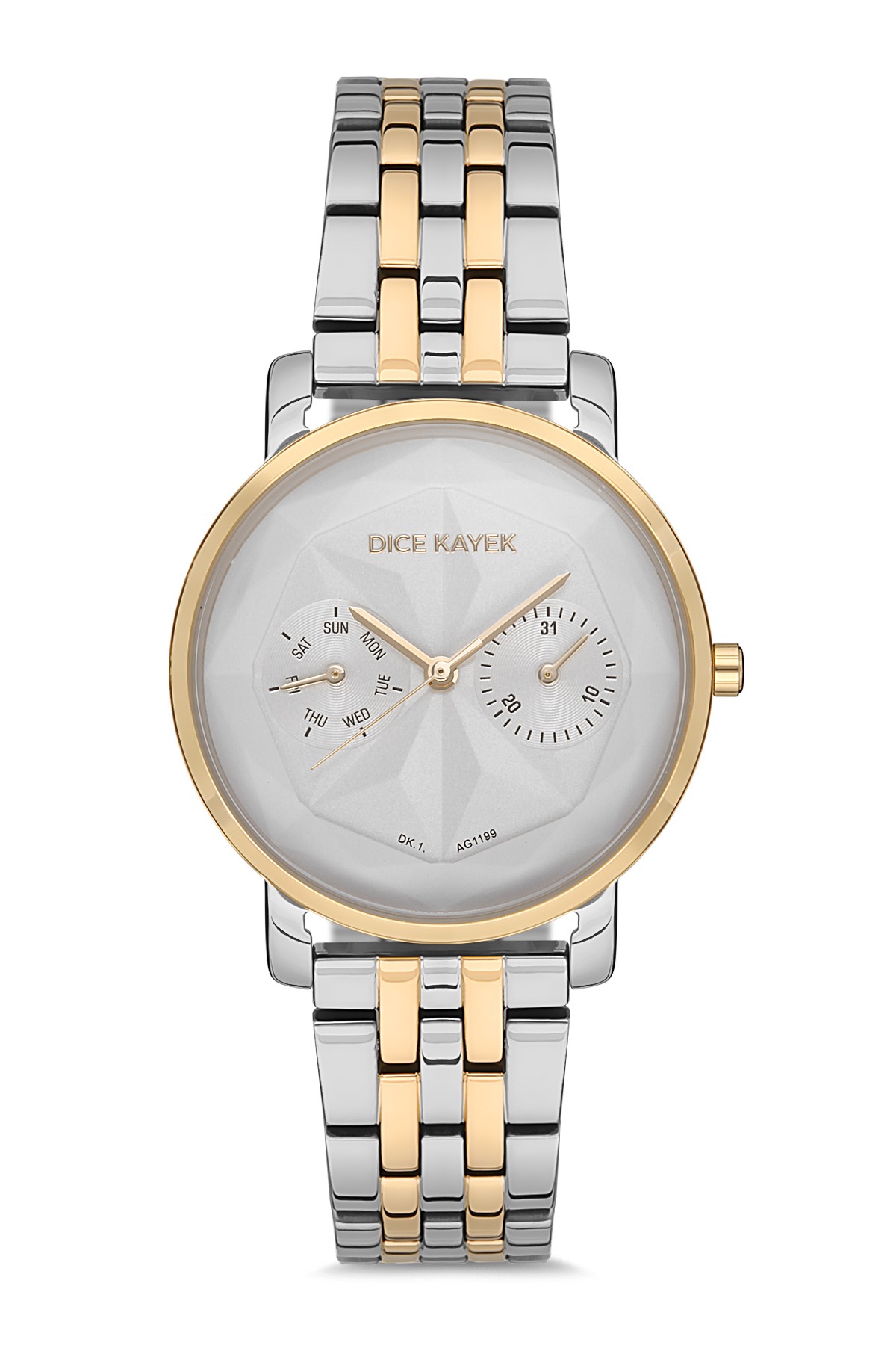 Kadın - Multi̇ Fonksi̇yon - Sari Beyaz - Gümüş - Paslanmaz Masi̇f Çeli̇k - 3 Atm - Sertleşti̇ri̇lmi̇ş Mi̇neral Cam - Dice Kayek - 34