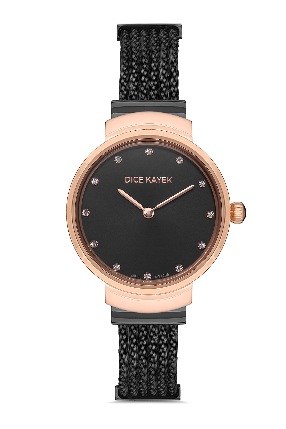 Kadın - Düz - Rose Si̇yah - Si̇yah - Paslanmaz Masi̇f Çeli̇k - 3 Atm - Sertleşti̇ri̇lmi̇ş Mi̇neral Cam - Dice Kayek