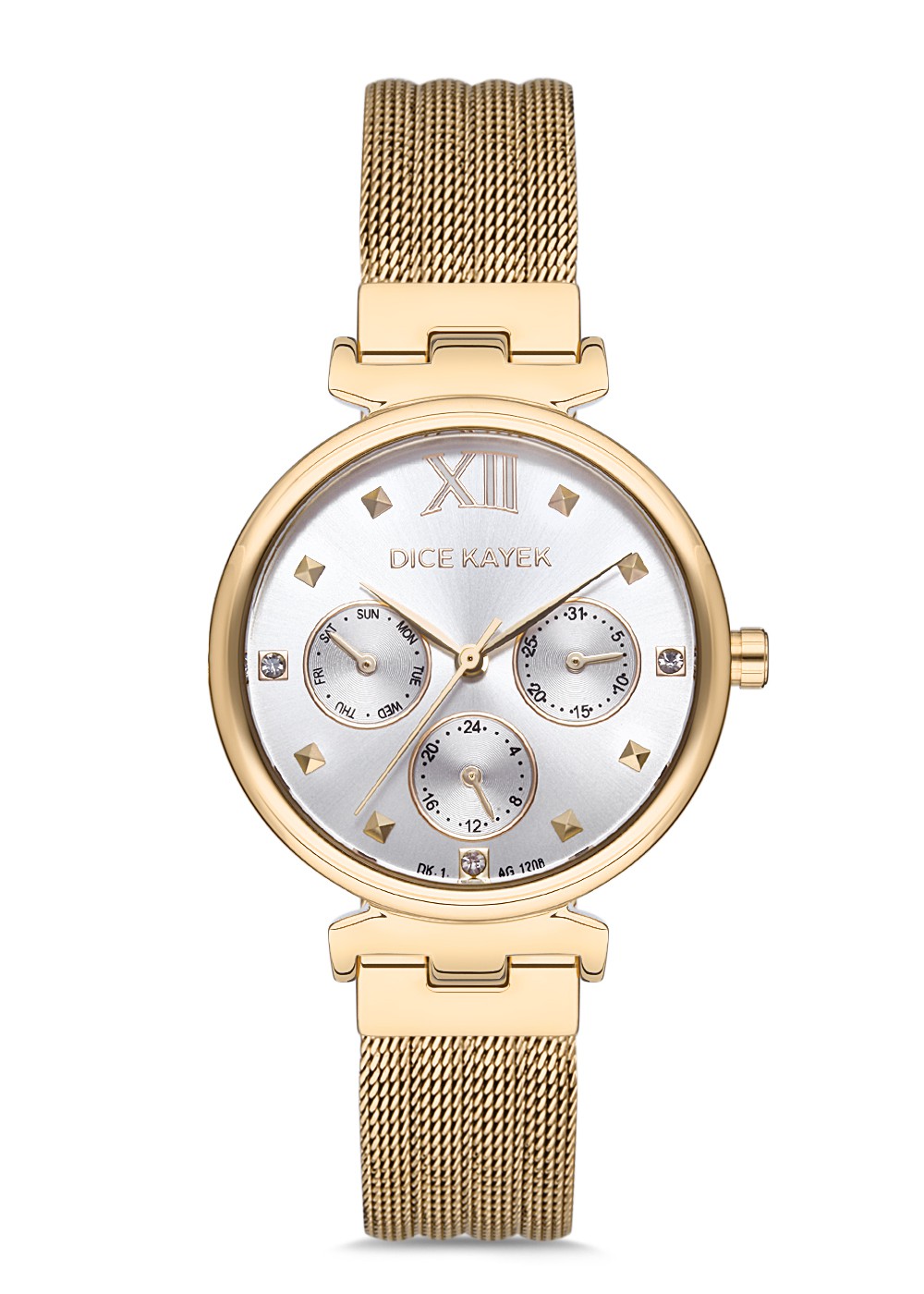 Kadın - Kronometre - Sari - Gümüş - Çeli̇k Örme Kordon - 3 Atm - Sertleşti̇ri̇lmi̇ş Mi̇neral Cam - Dice Kayek