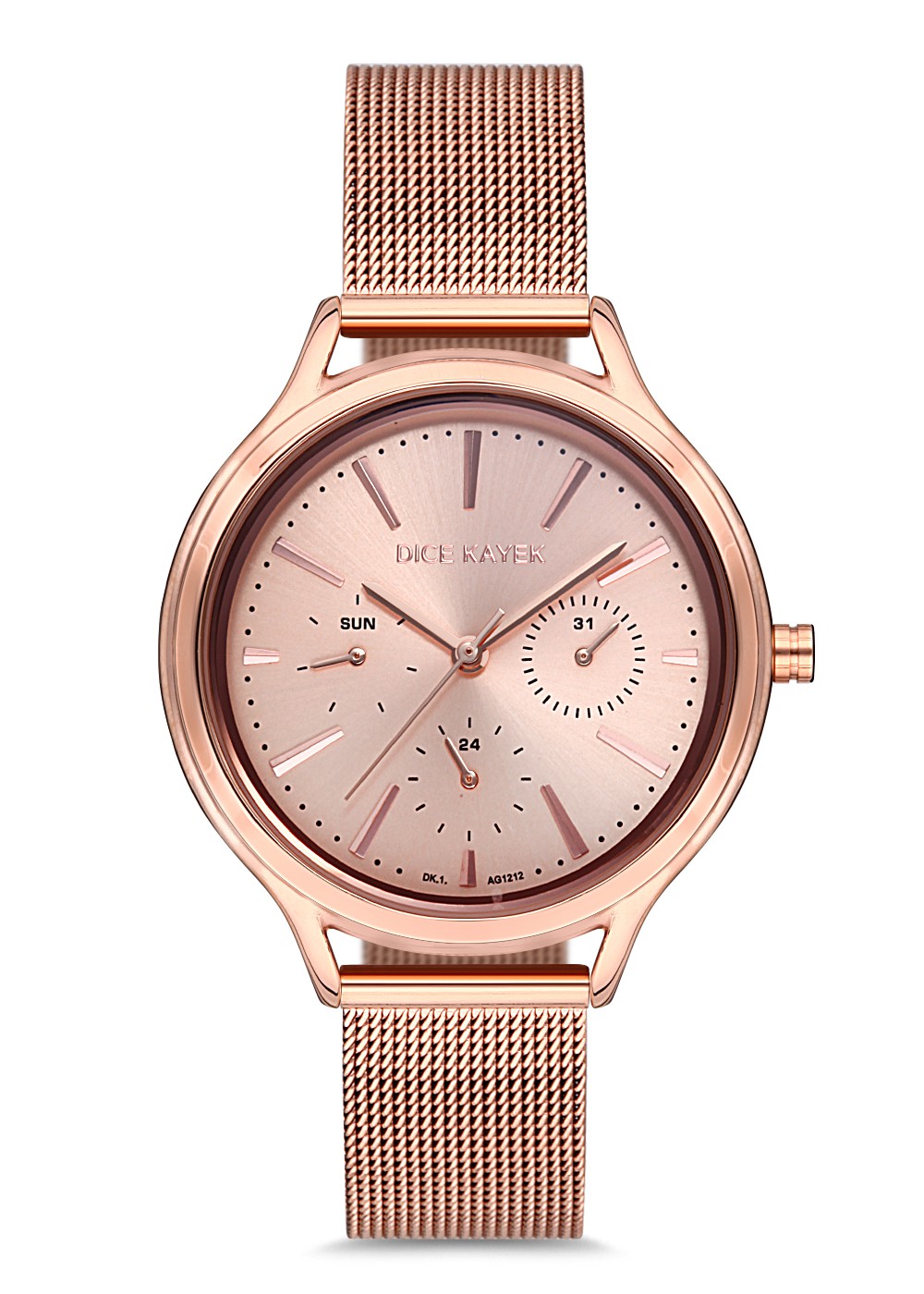 Kadın - Multi̇ Fonksi̇yon - Rose - Rose - Çeli̇k Örme Kordon - 3 Atm - Sertleşti̇ri̇lmi̇ş Mi̇neral Cam - Dice Kayek