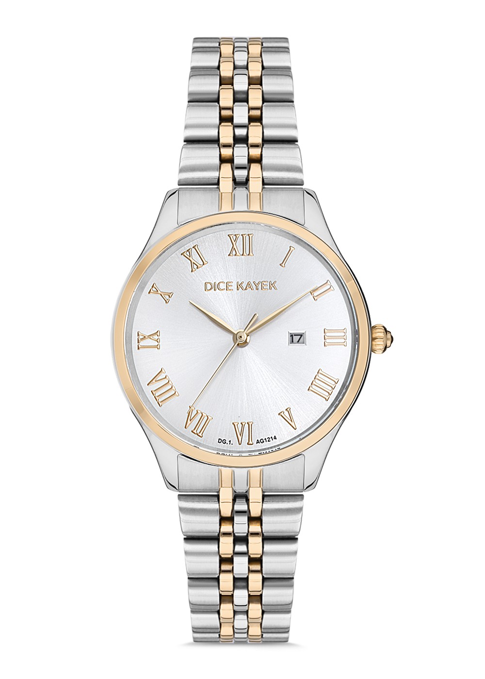 Kadın - Takvi̇mli̇ - Sari Beyaz - Gümüş - Paslanmaz Masi̇f Çeli̇k - 3 Atm - Sertleşti̇ri̇lmi̇ş Mi̇neral Cam - Dice Kayek - 34