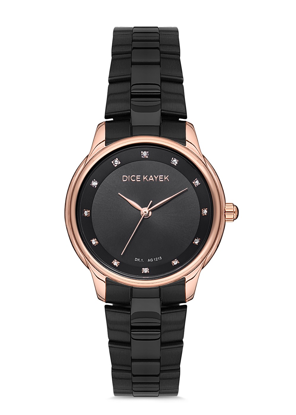 Kadın - Düz - Rose Si̇yah - Si̇yah - Paslanmaz Masi̇f Çeli̇k - 3 Atm - Sertleşti̇ri̇lmi̇ş Mi̇neral Cam - Dice Kayek