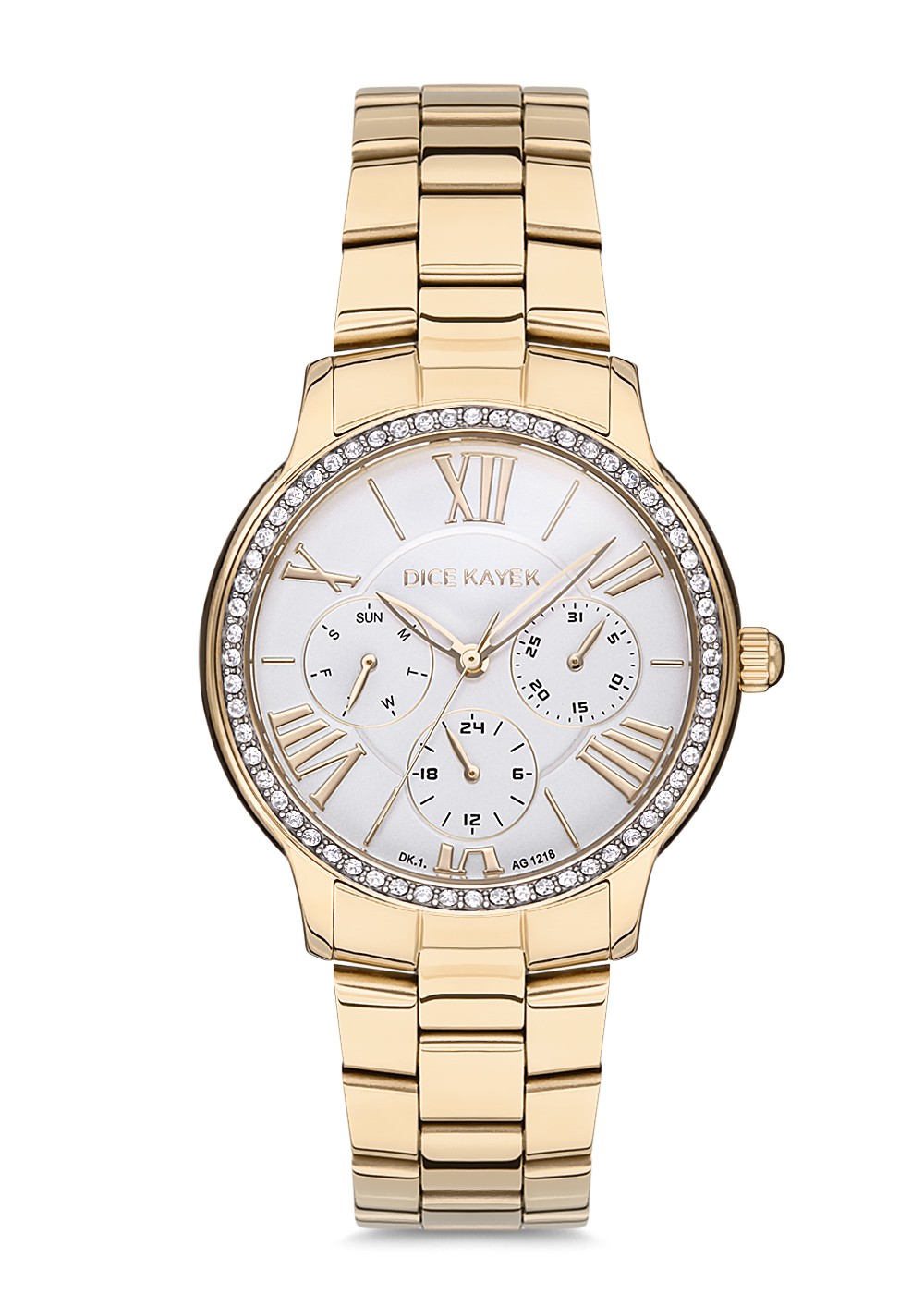 Kadın - Taşli - Sari - Gümüş - Paslanmaz Masi̇f Çeli̇k - 3 Atm - Sertleşti̇ri̇lmi̇ş Mi̇neral Cam - Dice Kayek