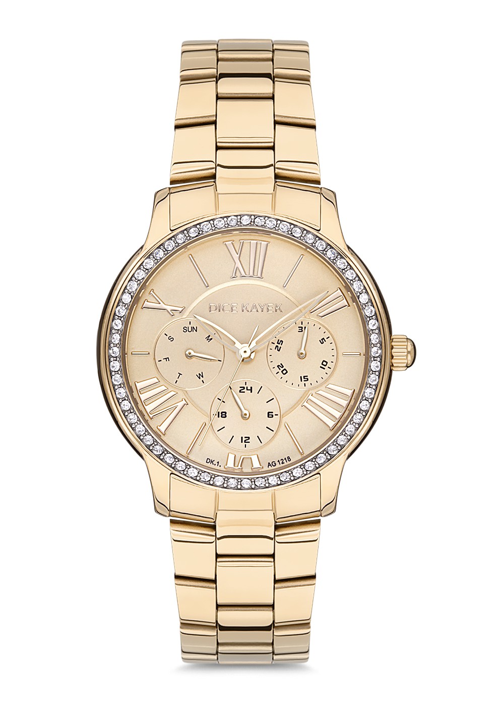 Kadın - Taşli - Sari - Sari - Paslanmaz Masi̇f Çeli̇k - 3 Atm - Sertleşti̇ri̇lmi̇ş Mi̇neral Cam - Dice Kayek