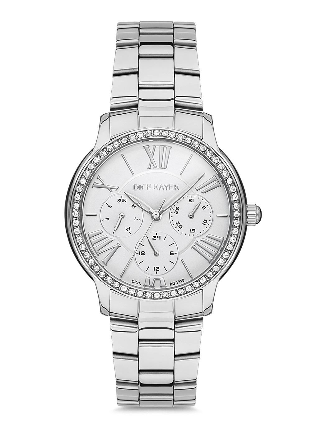 Kadın - Taşli - Gümüş - Gümüş - Paslanmaz Masi̇f Çeli̇k - 3 Atm - Sertleşti̇ri̇lmi̇ş Mi̇neral Cam - Dice Kayek