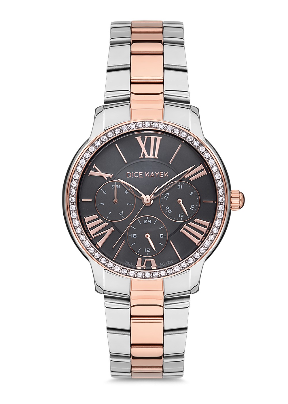 Kadın - Taşli - Rose Beyaz - Si̇yah - Paslanmaz Masi̇f Çeli̇k - 3 Atm - Sertleşti̇ri̇lmi̇ş Mi̇neral Cam - Dice Kayek