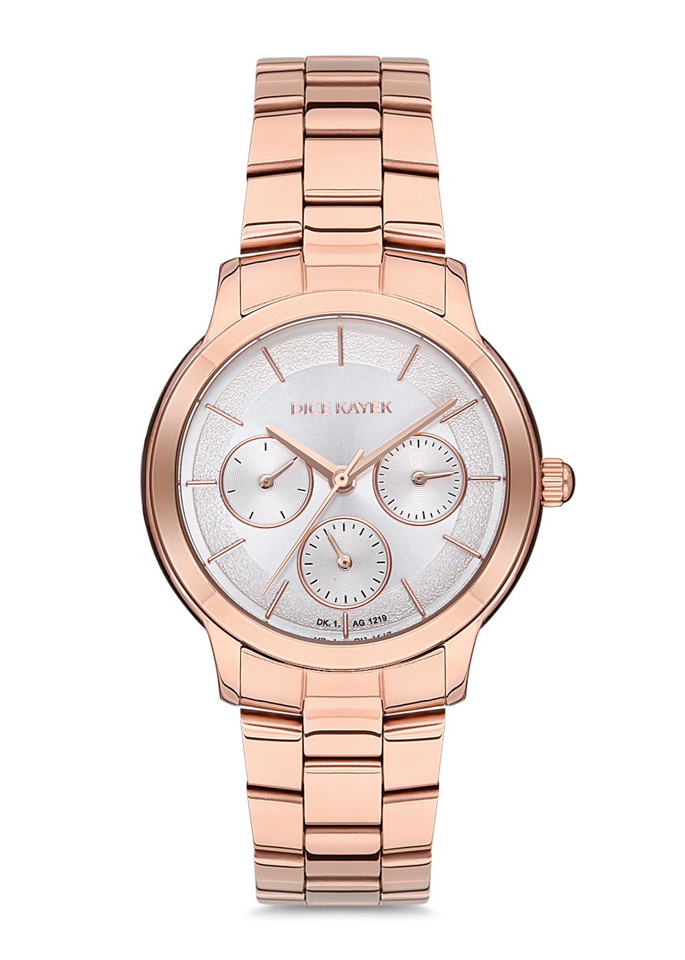 Kadın - Multi̇ Fonksi̇yon - Rose - Gümüş - Paslanmaz Masi̇f Çeli̇k - 3 Atm - Sertleşti̇ri̇lmi̇ş Mi̇neral Cam - Dice Kayek