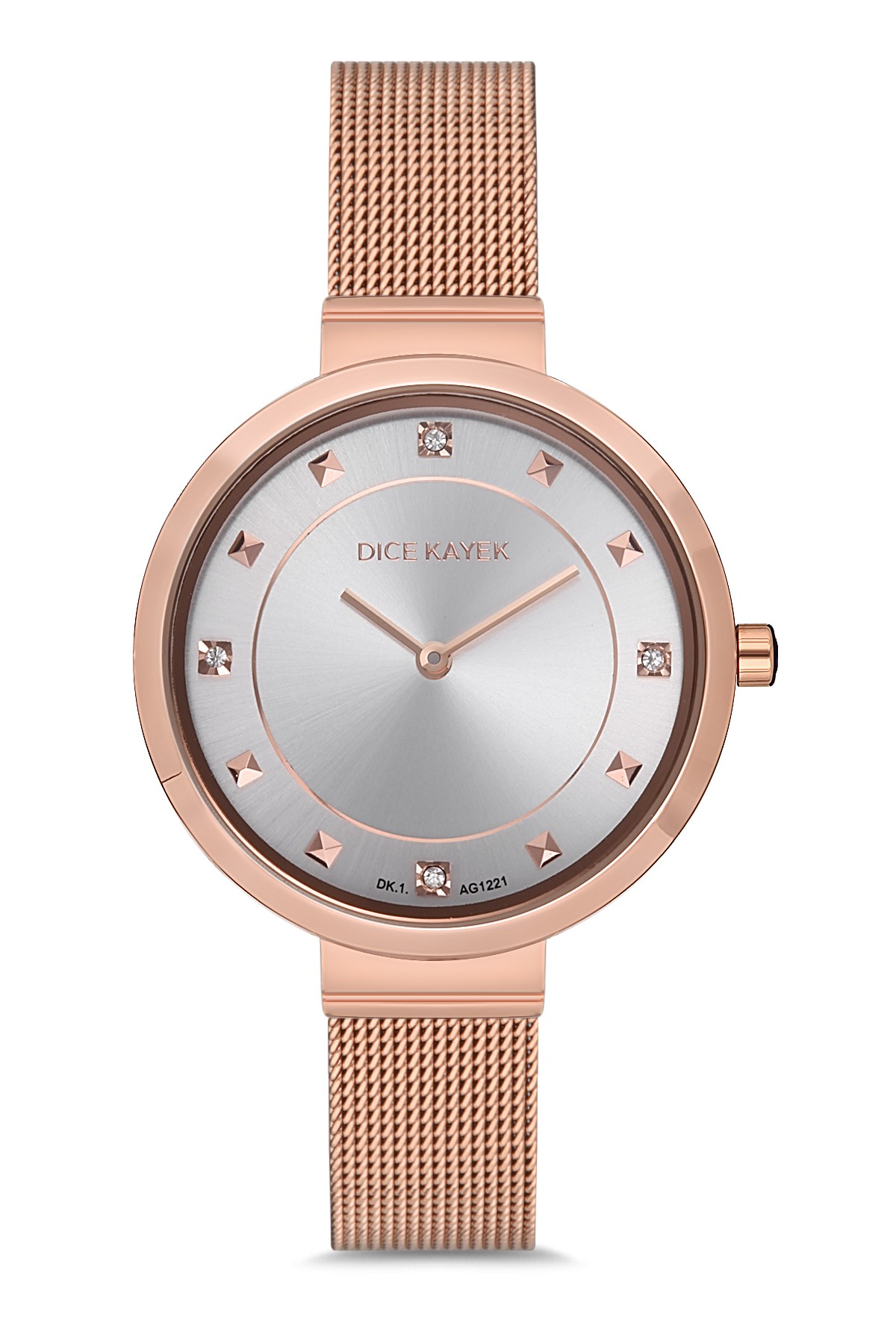 Kadın - Düz - Rose - Gümüş - Çeli̇k Örme Kordon - 3 Atm - Sertleşti̇ri̇lmi̇ş Mi̇neral Cam - Dice Kayek