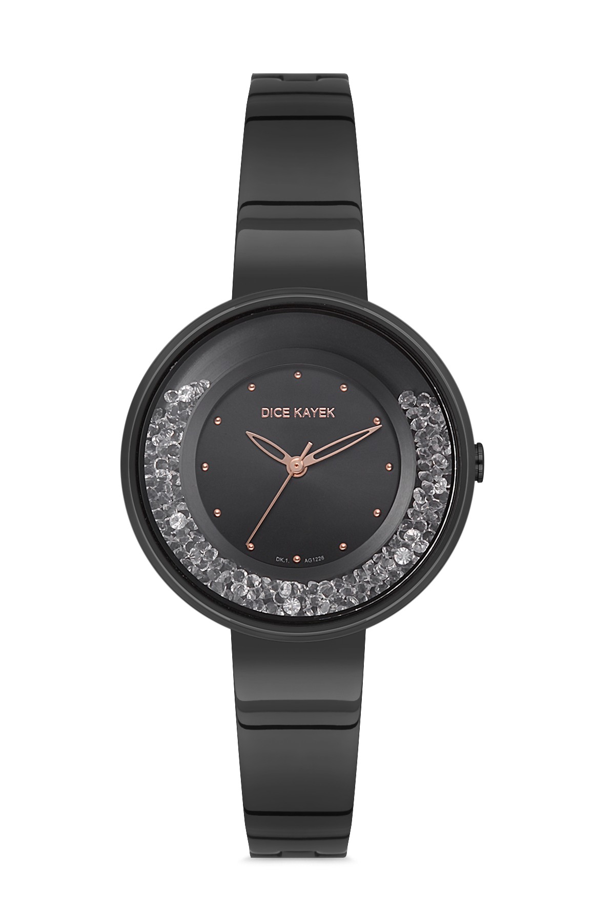 Kadın - Taşli - Si̇yah - Si̇yah - Paslanmaz Masi̇f Çeli̇k - 3 Atm - Sertleşti̇ri̇lmi̇ş Mi̇neral Cam - Dice Kayek