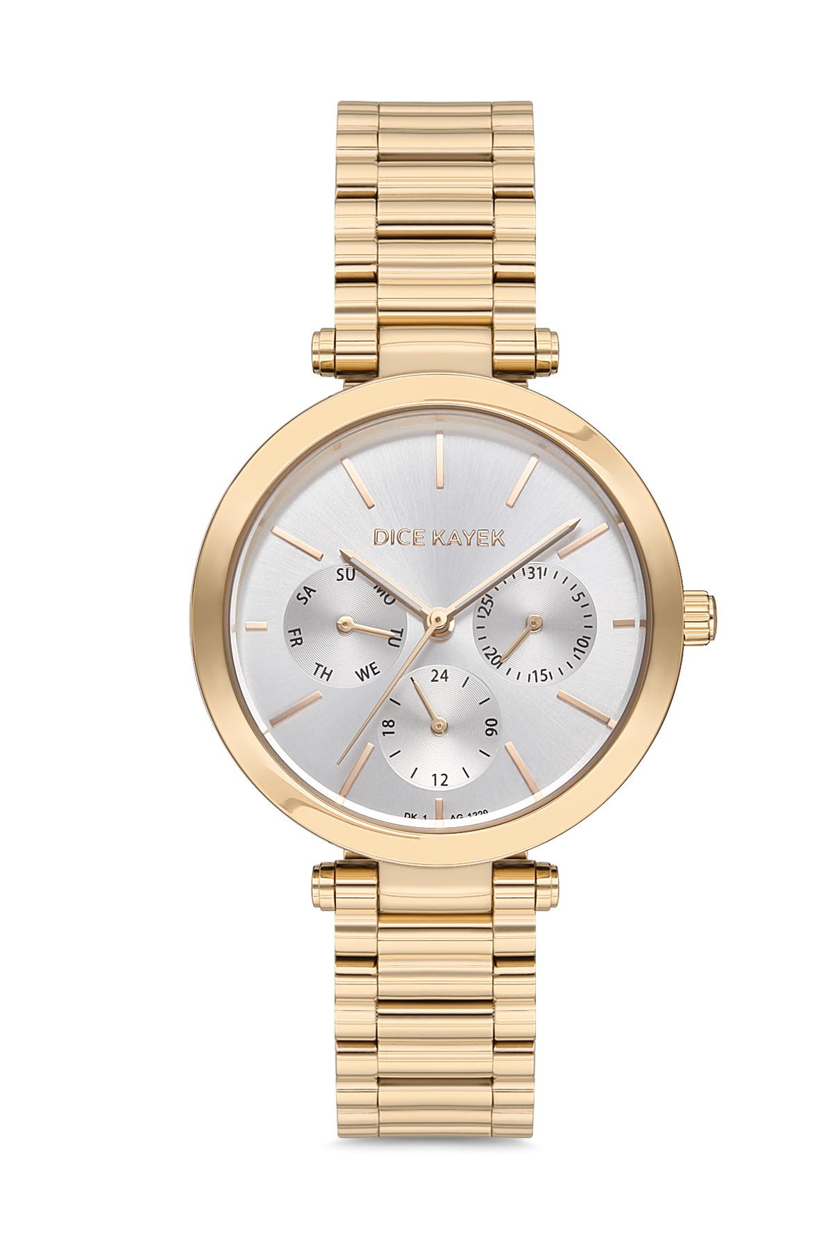 Kadın - Multi̇ Fonksi̇yon - Sari - Gümüş - Paslanmaz Masi̇f Çeli̇k - 3 Atm - Sertleşti̇ri̇lmi̇ş Mi̇neral Cam - Dice Kayek
